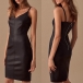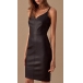 Sexy Solid Color Deep V-neck Slim Fit PU Artificial Leather Slip Dress