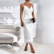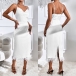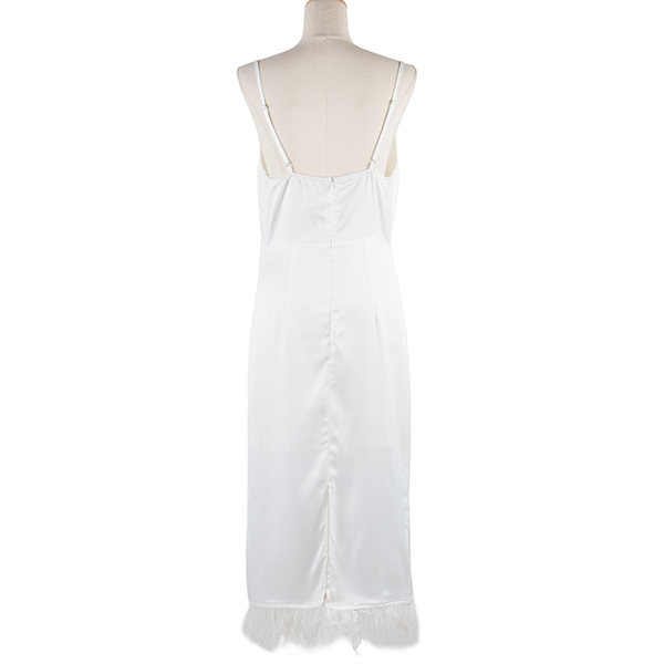 Sexy Solid Color Drape Neck Tassel Hemline Party Slip Dress