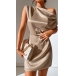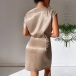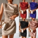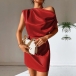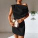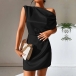 Sexy Solid Color Draped Neck One-shoulder Satin Dress