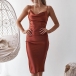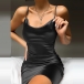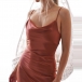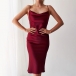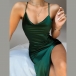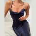 Sexy Solid Color Draped Neck Slit Satin Slip Dress
