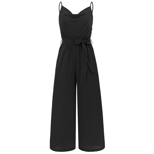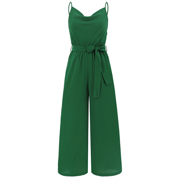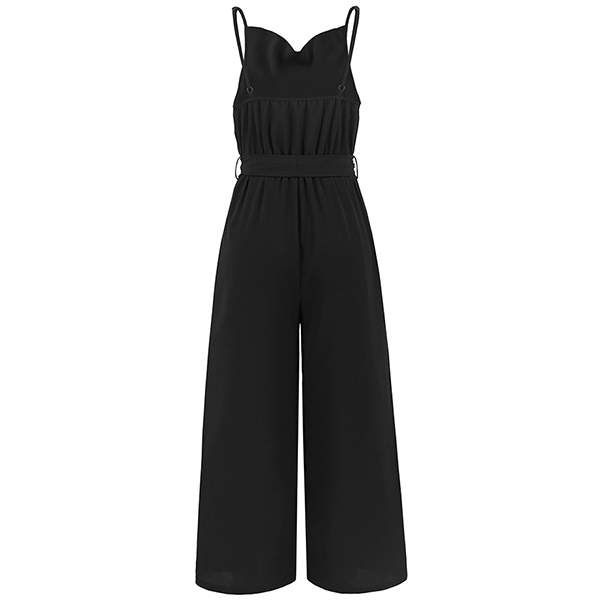 Sexy Solid Color Draped V-neck Self-tie Jumpsuit