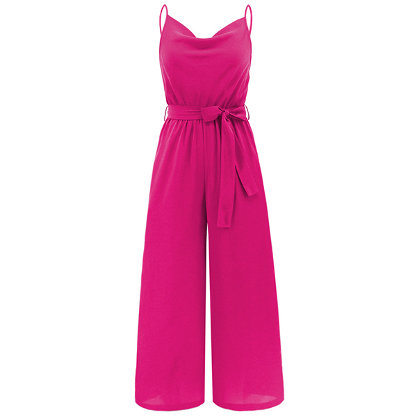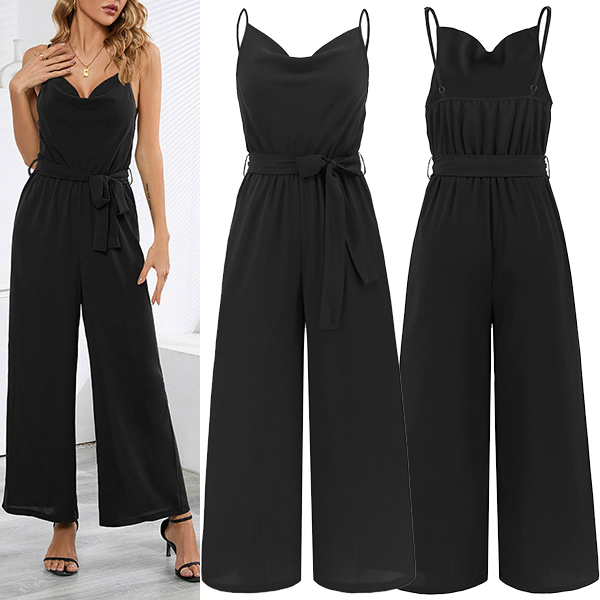 Cette combinaison présente un décolleté en V drapé flatteur qui ajoute une touche d'élégance et de féminité à votre tenue. La taille à nouer permet un ajustement personnalisé et confortable. Que vous assistiez à un mariage, à un cocktail ou à une soirée, cette combinaison fera tourner les têtes et laissera une impression durable.
