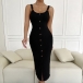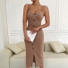 This dress is the epitome of elegance and sensuality. The solid color adds a touch of sophistication, while the front button detailing and slit design adds chic and trendy elements. Made with high-quality fabric, this slip dress is comfortable to wear and will make you feel confident and empowered.