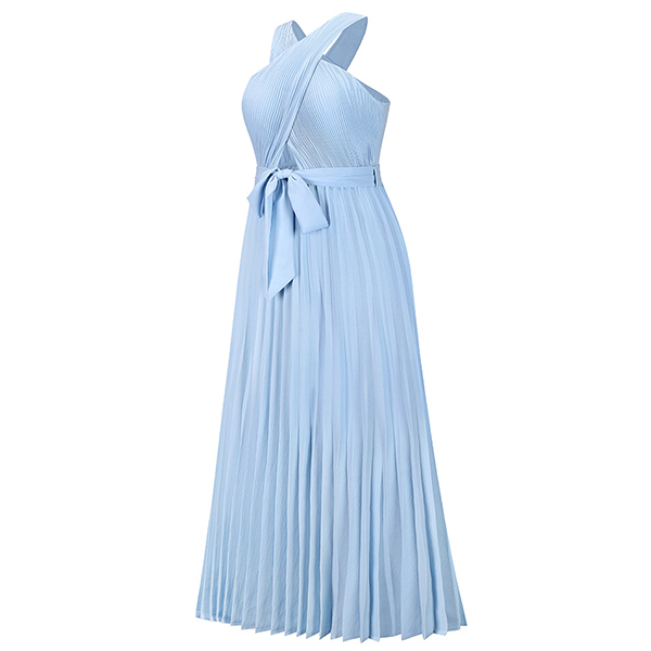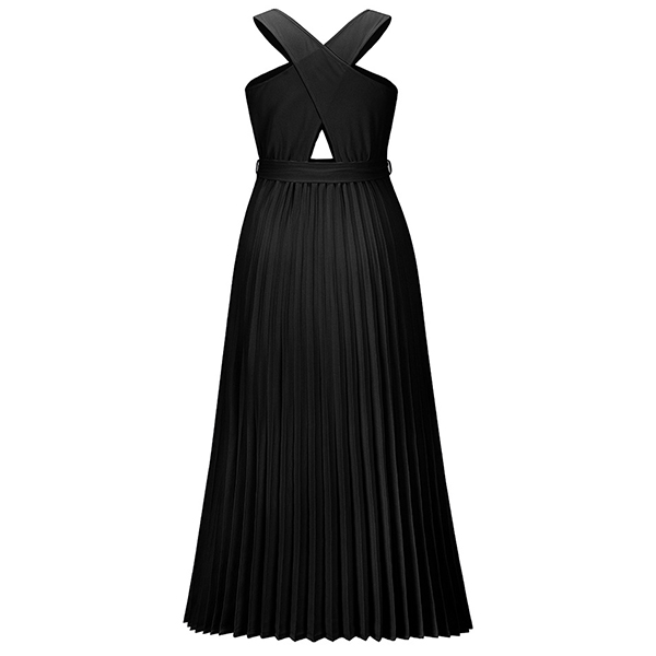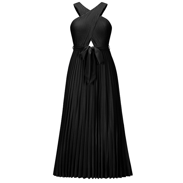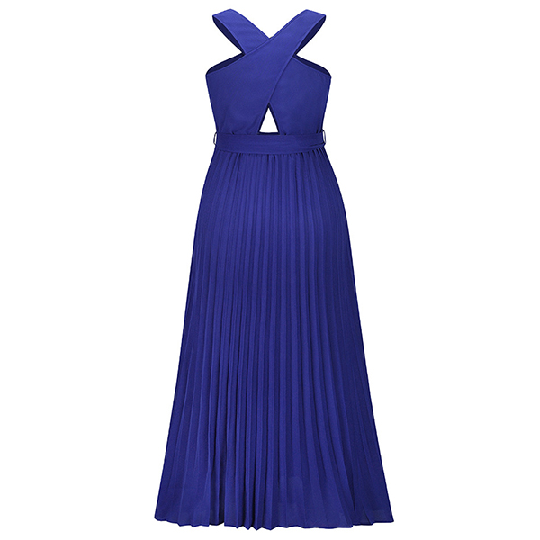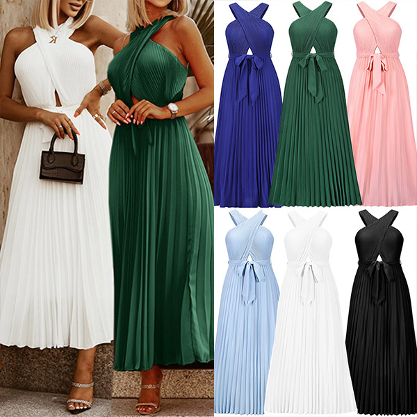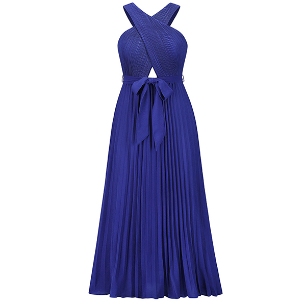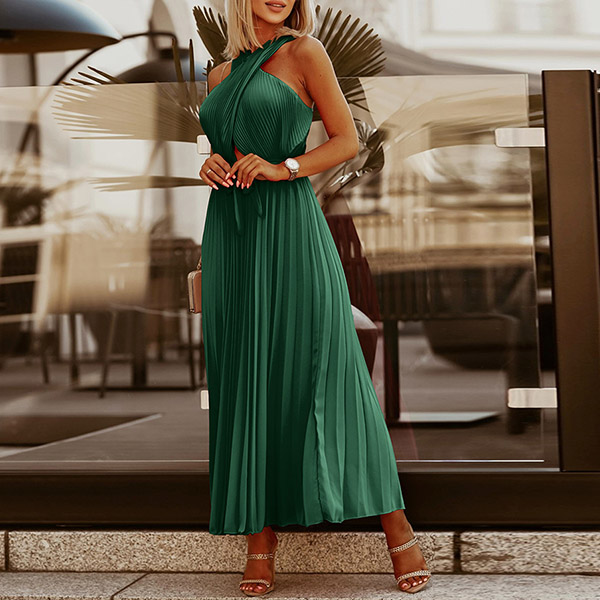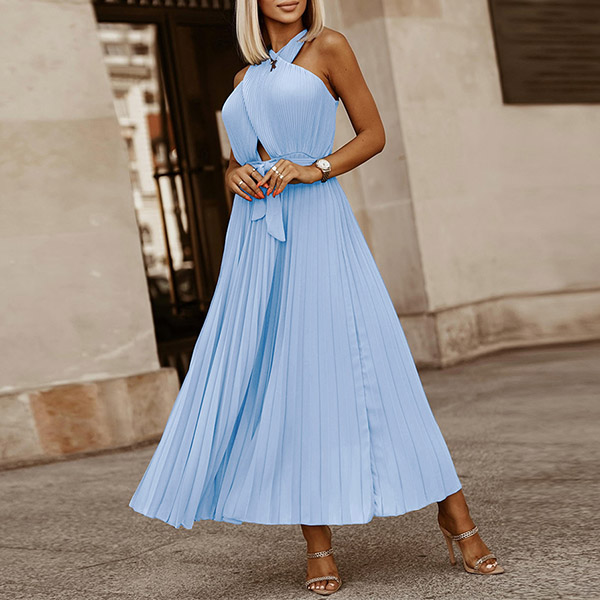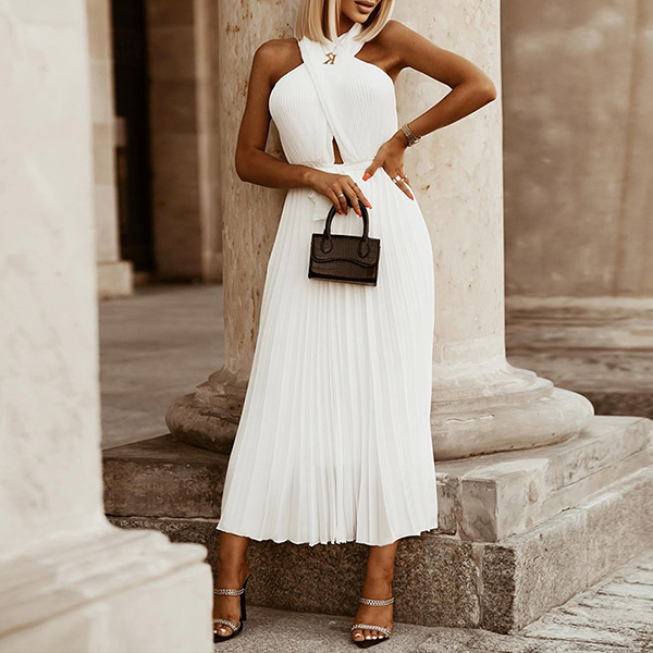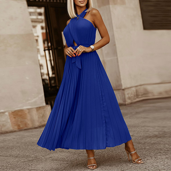 Sexy Solid Color Front Cutout Sleeveless Pleated Halter Dress
