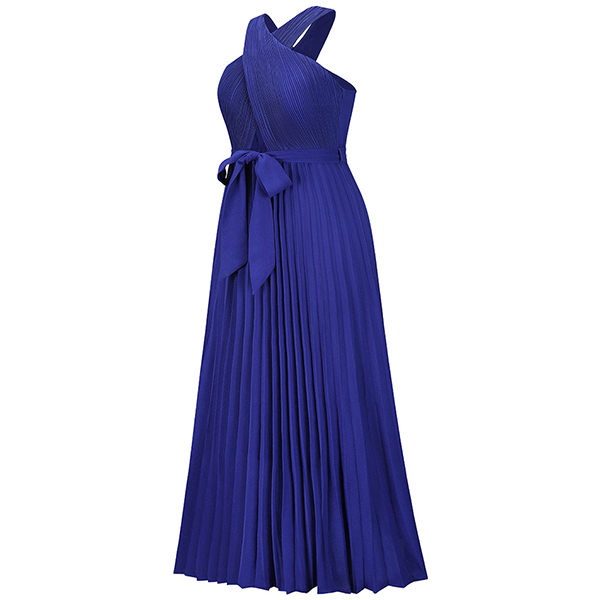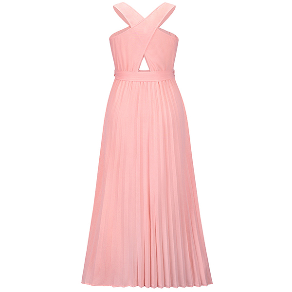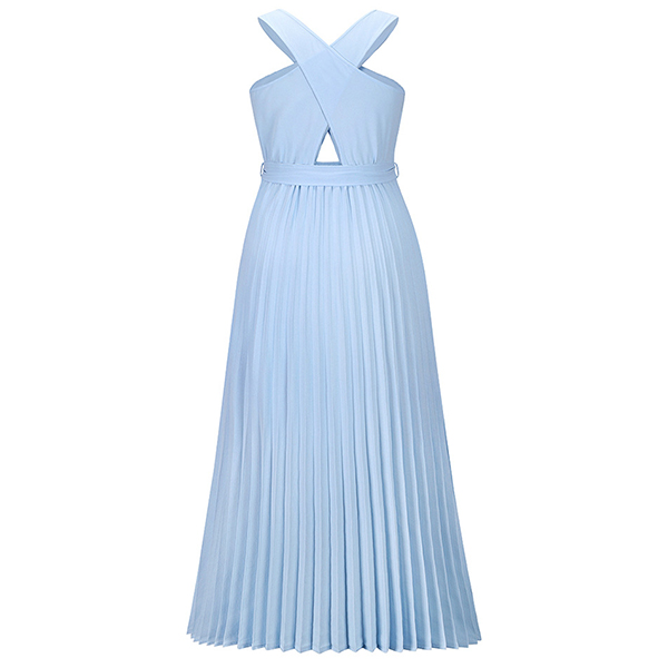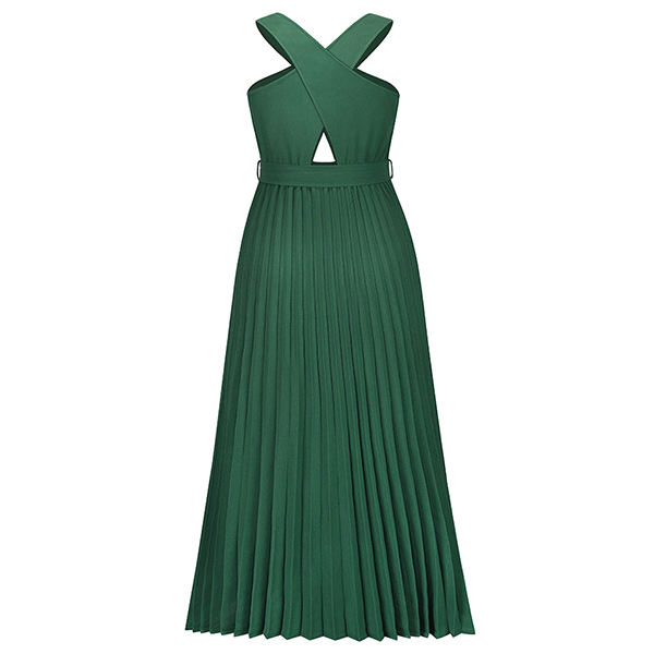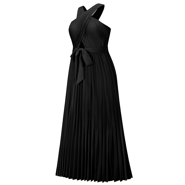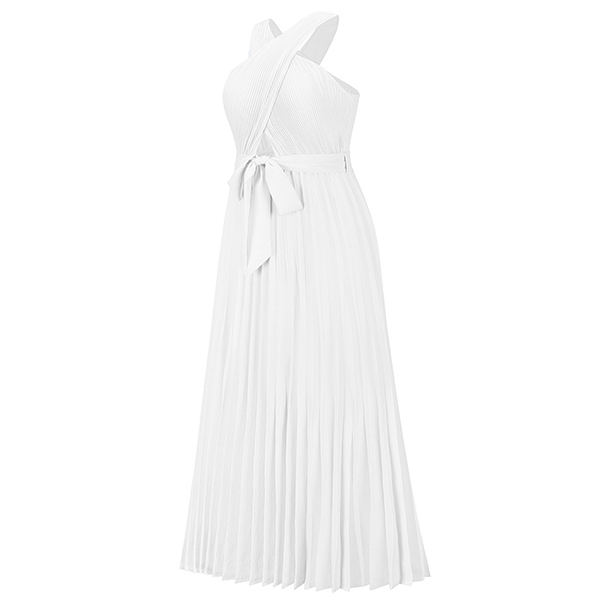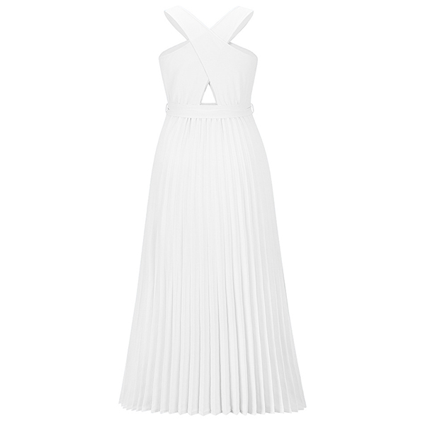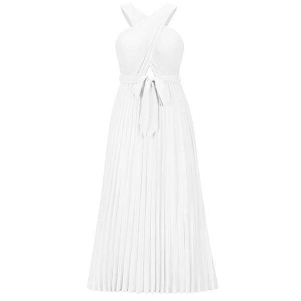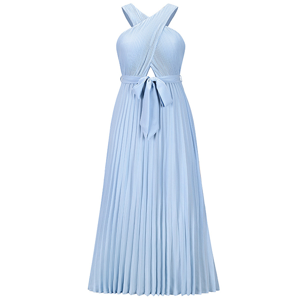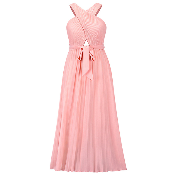 Sexy Solid Color Front Cutout Sleeveless Pleated Halter Dress