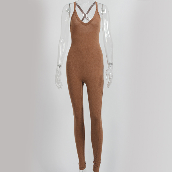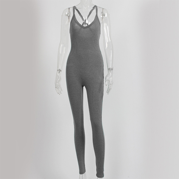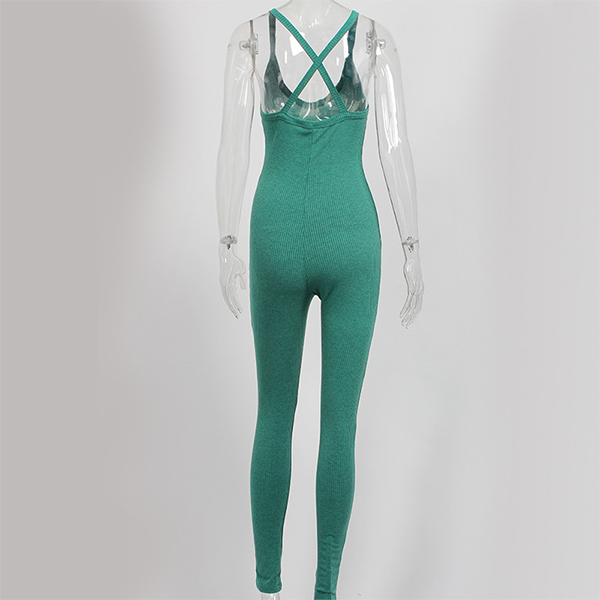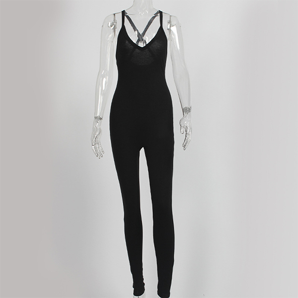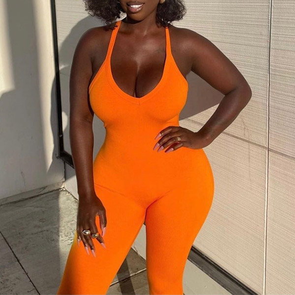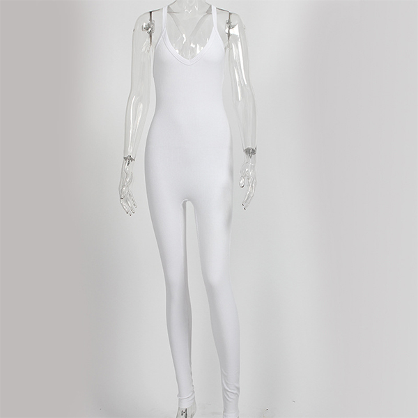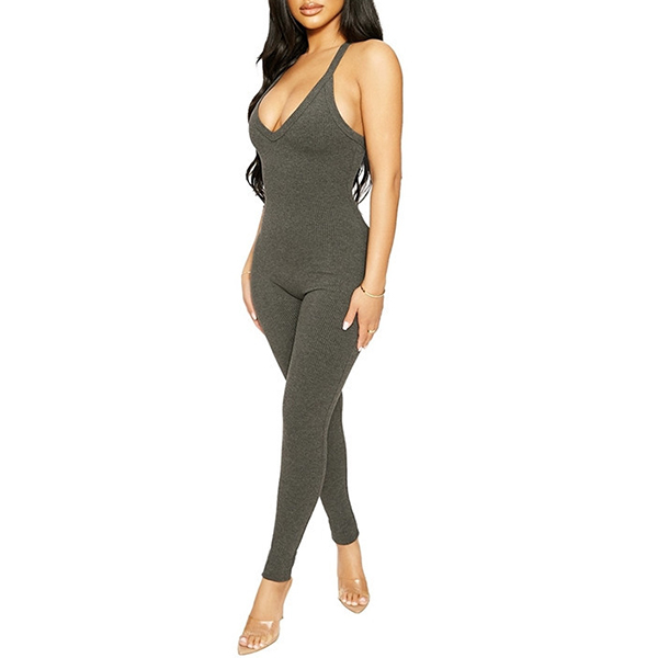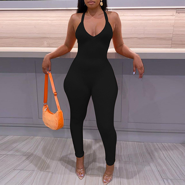 Sexy Solid Color Front Knotted Deep V-neck Sleeveless Slim Fit Jumpsuit