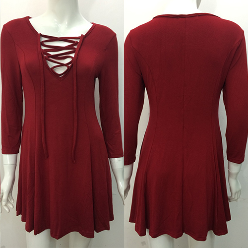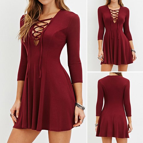 This piece boasts a solid-coloured hue, 3/4 sleeve, front lace-up and v-neck design, which highlights your sexy