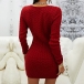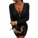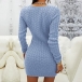 Sexy Solid Color Half-zip V-neck Long Sleeve Bodycon Knitted Sweater Dress