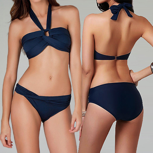 How could you lack this sexy and charming bikini set for your seaside trip? Solid color style,