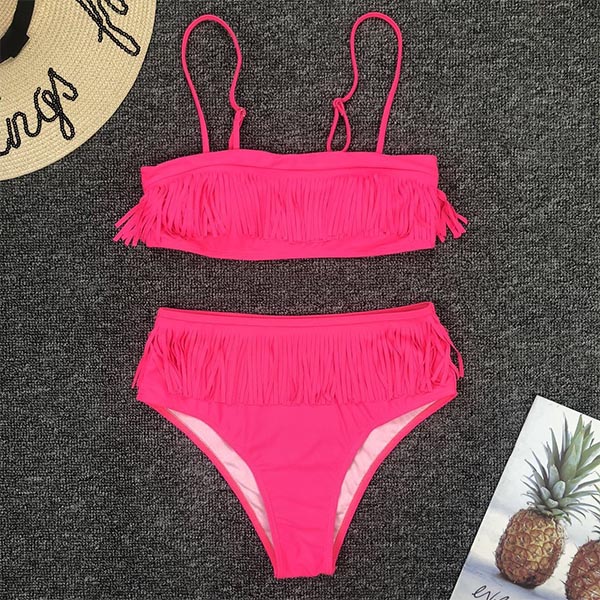 Hey,girls,it is a good time for you to head to the seaside to relax yourself when the summer season hits. So take this bikini set with you. Solid color style,including a backless sling bikini top and a high-waist bikini bottom,the tassel details make it look more eye-catching and distinctive. You can have a memorable and wonderful time in this bikini set!