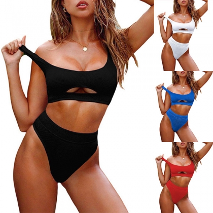 For your summer days when you wanna go to the seaside,then your suitcase should have a bikini set. Made of soft and breathable fabric,this bikini set can give you the comfortable wearing feeling. The bikini top features hollow out design,coming with the matching high waist bikini briefs,which also can flaunt off your seductive curve.
