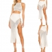 Sexy Solid Color Hollow Out Knit Crtop Top + Slit Hem Skirt Beach Set
