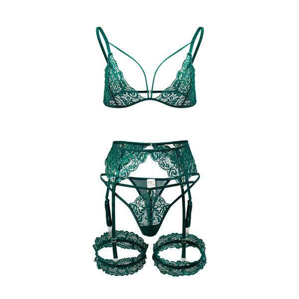 Sexy Solid Color Hollow Out Lace Underwear Lingerie Set