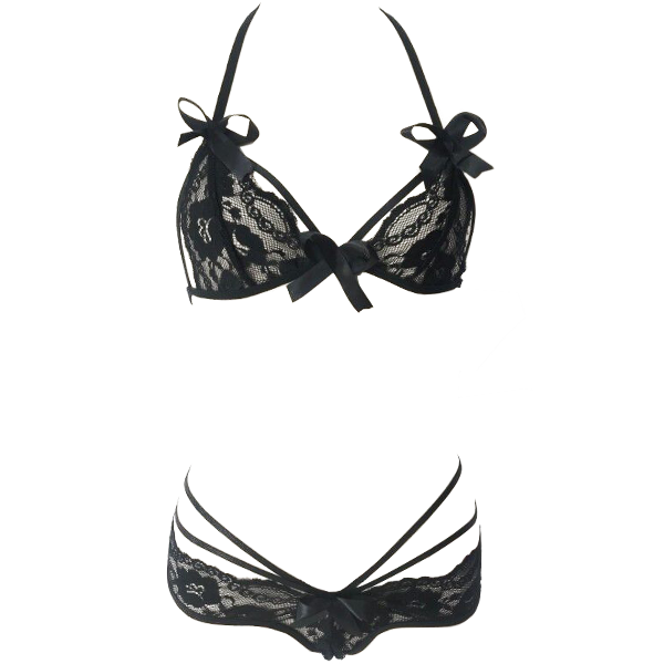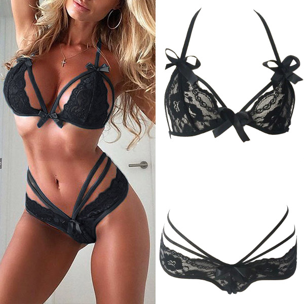 Sexy Solid Color Hollow Out Lace Underwear Lingerie Set