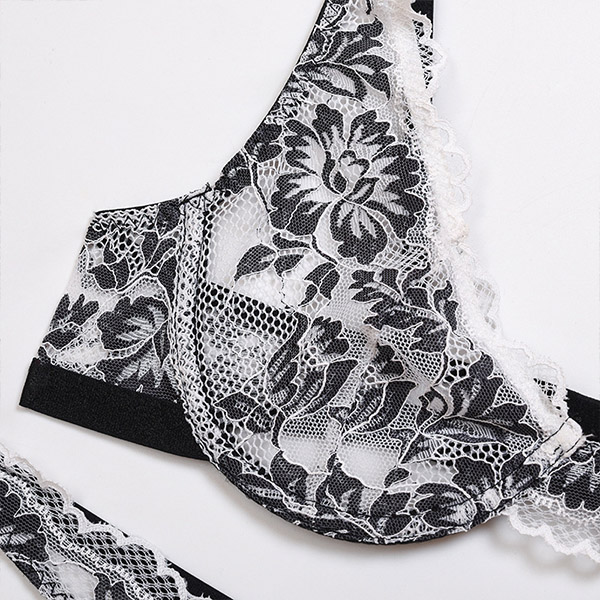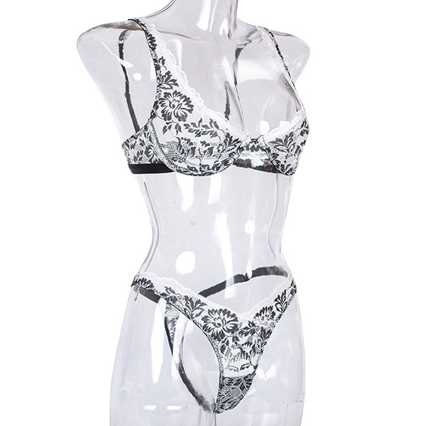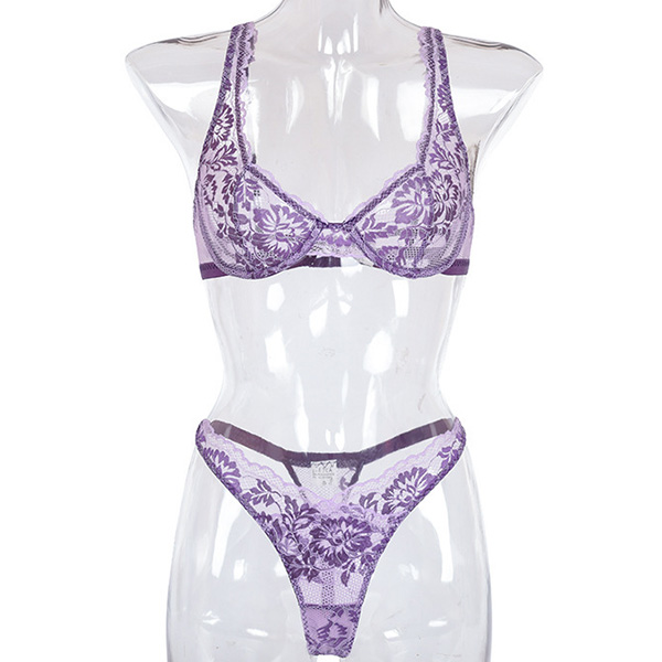 Sexy Solid Color Hollow Out Lace Underwire Lingerie Set