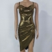 Sexy Solid Color Irregular Hemline Cowl Neck Slip Dress