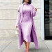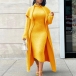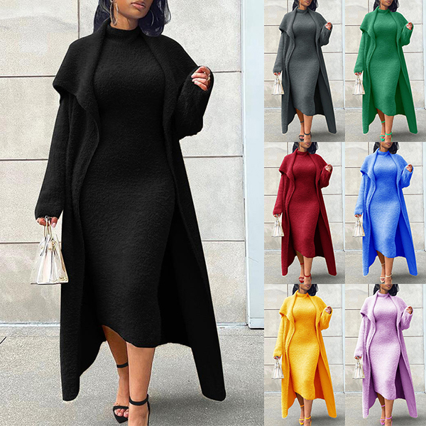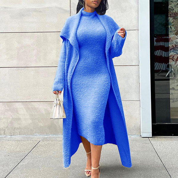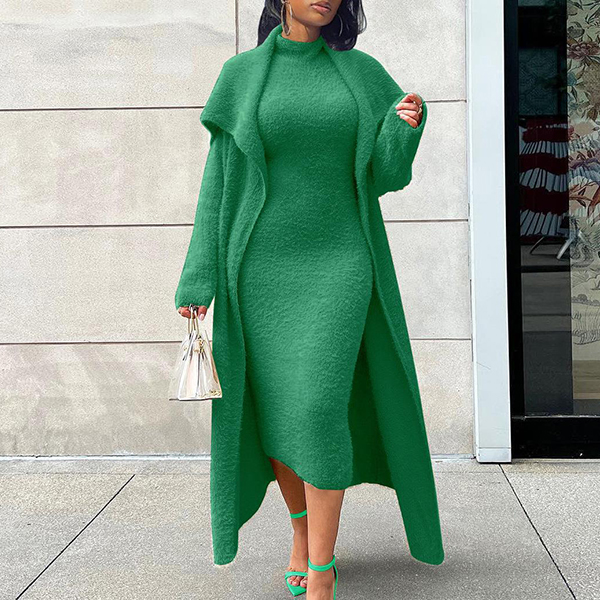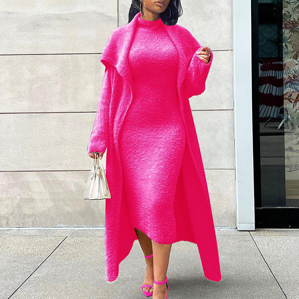 Sexy Solid Color Knitted Two-piece Set Consist of Cardigan and Mock Neck Sleeve Bodycon Dress