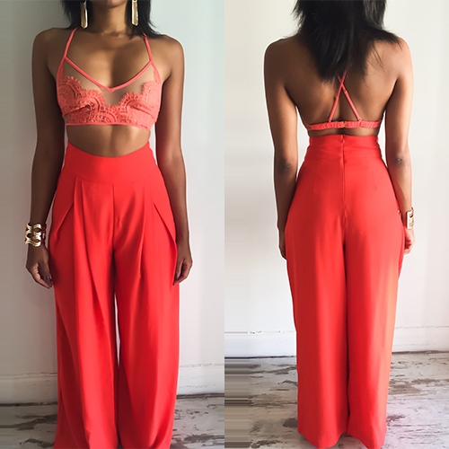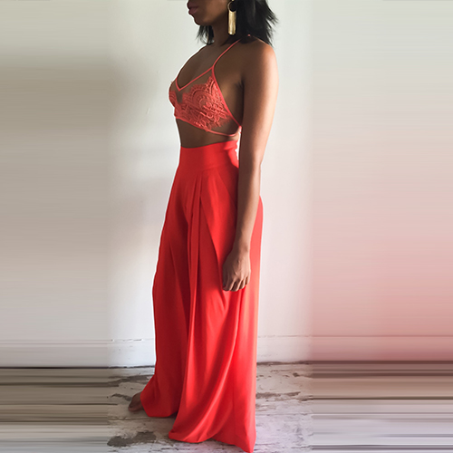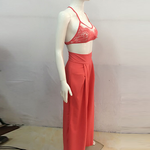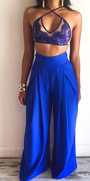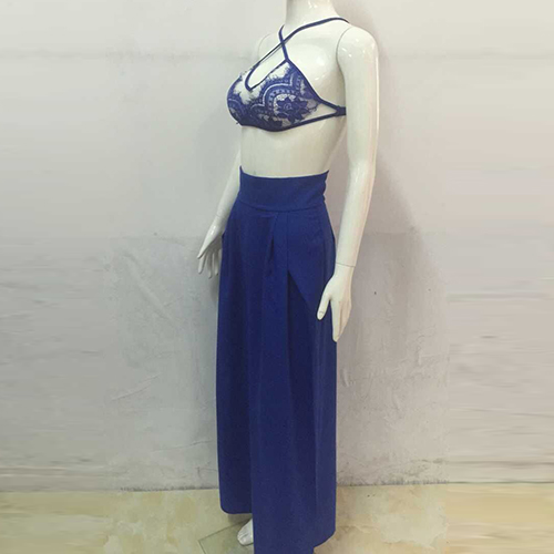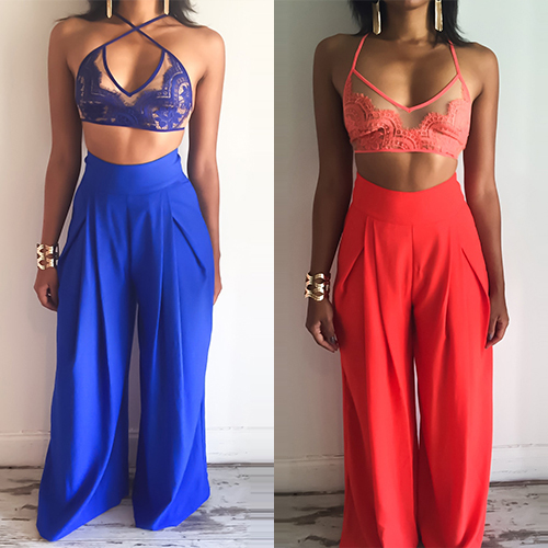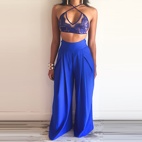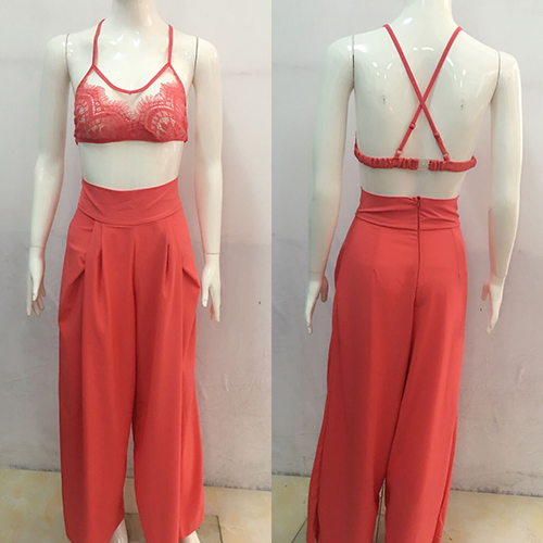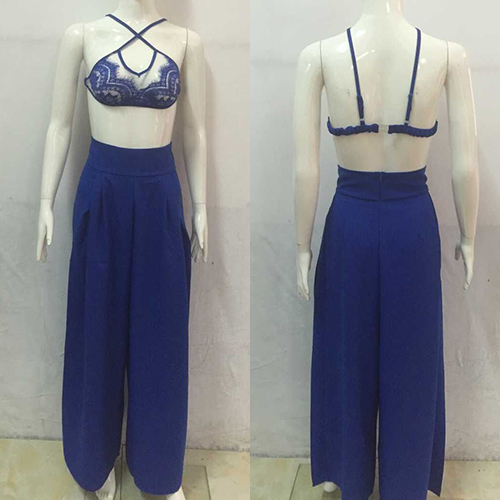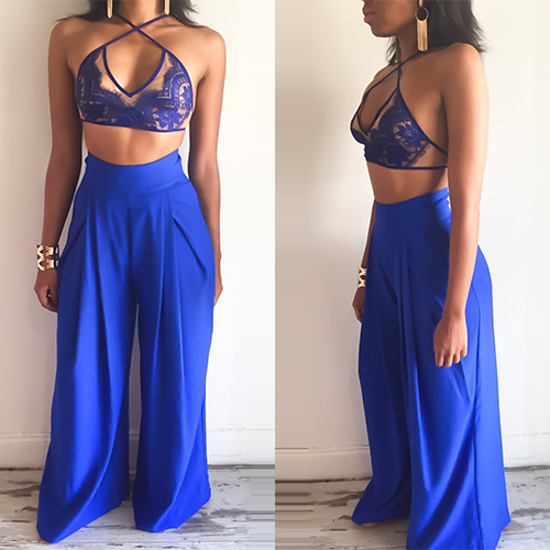 Such a sexy two-piece set! Including a lace crop tops and a wide legs pants, sexy and fashion.