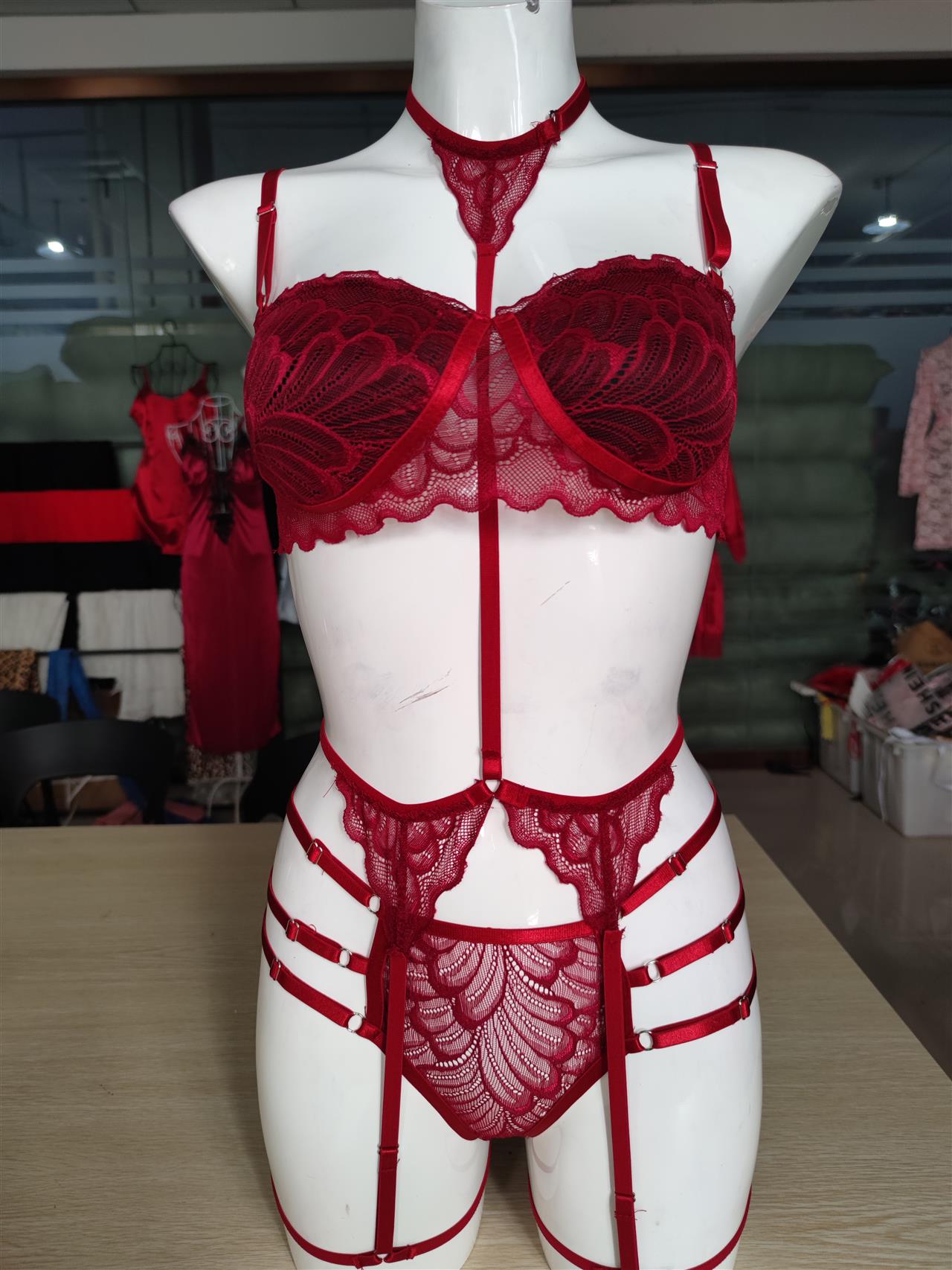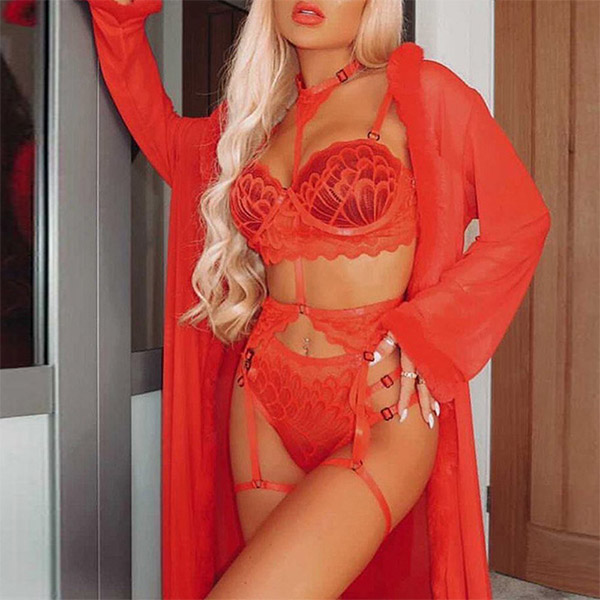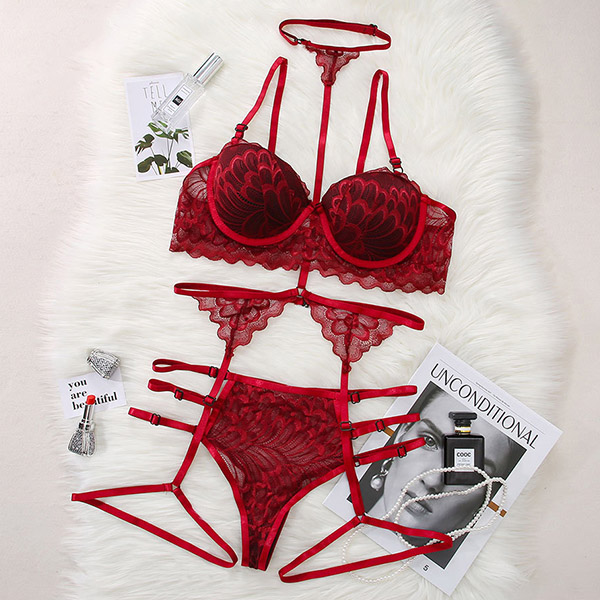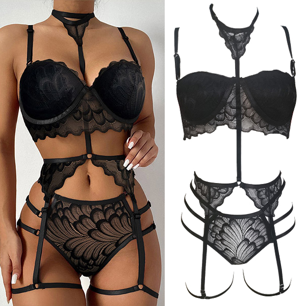 The lingerie set with garter belt is made soft and breathable fabric,which offers you enough stretch to hug your body perfectly. It features sheer lace cups with strappy detail, adjustable spaghetti straps, a hook back closure, a matching high waisted garter belt with adjustable garter straps,this lingerie set with garter belt is perfect for a ladies night event, Valentine's Day, bachelorette party, anniversary getaway, special for nights,etc.