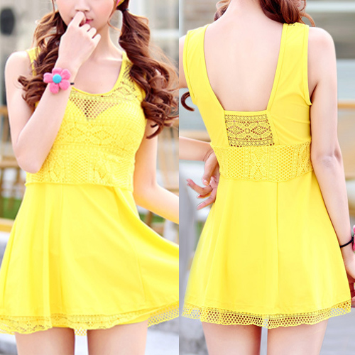 This swimsuit features one-piece style,with bright color design,can perfect set off your fair skin.