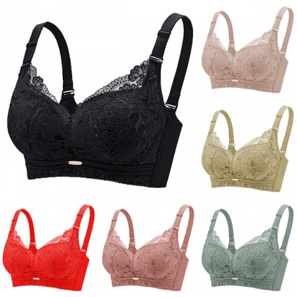 Sexy Solid Color Lace Spliced Push-up Wireless Bra