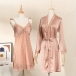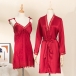 Sexy Solid Color Lace Spliced Sling Dress + Long Sleeve Robe Nightwear Two-piece Set