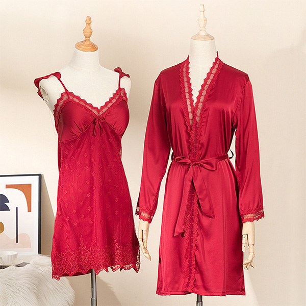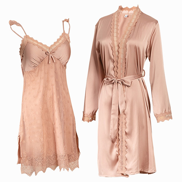 This two-piece nightwear set can meet your different needs in different seasons. In these hot days,you can choose this sling dress. And when the days get a little cold,this long sleeve robe would be your good choice. In addition,the lace spliced details will enrich the design style as well as boost its entire charm. When you put them on and stand in front of the mirror, you will know how charming you are! What are you hesitating about?
