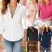 lapel, long sleeve and single-breasted design, this blouse perfect sets off your feminine charm. Pair it with shorts,
