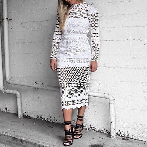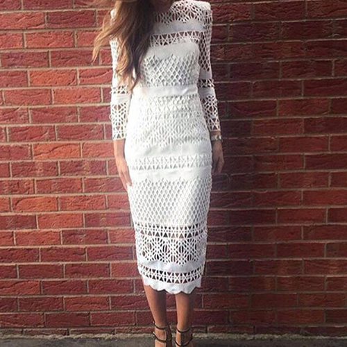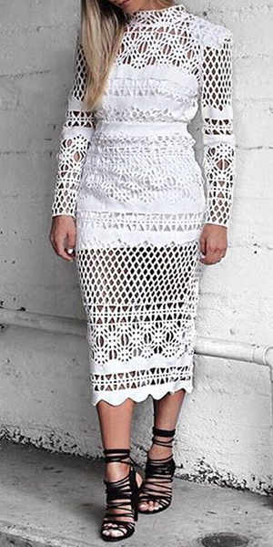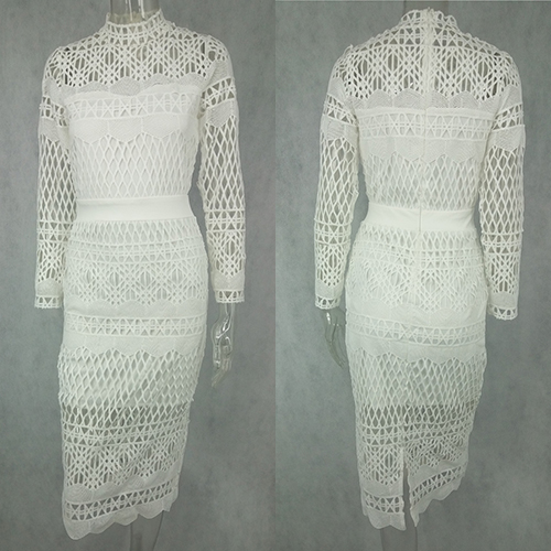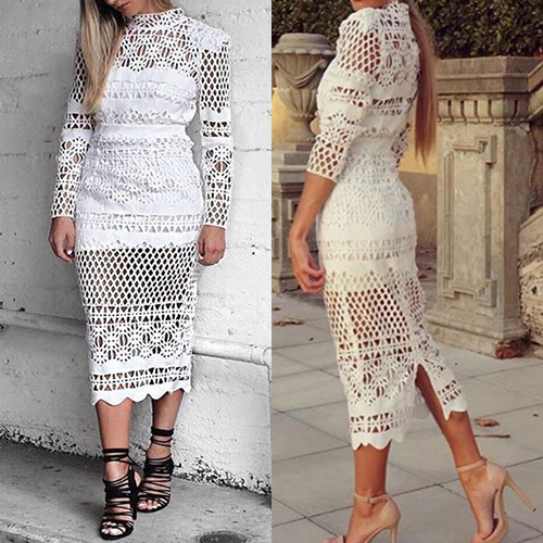 chic dress for yourself? A pure white color is paired with mock neck, long sleeve and back slit design,