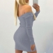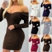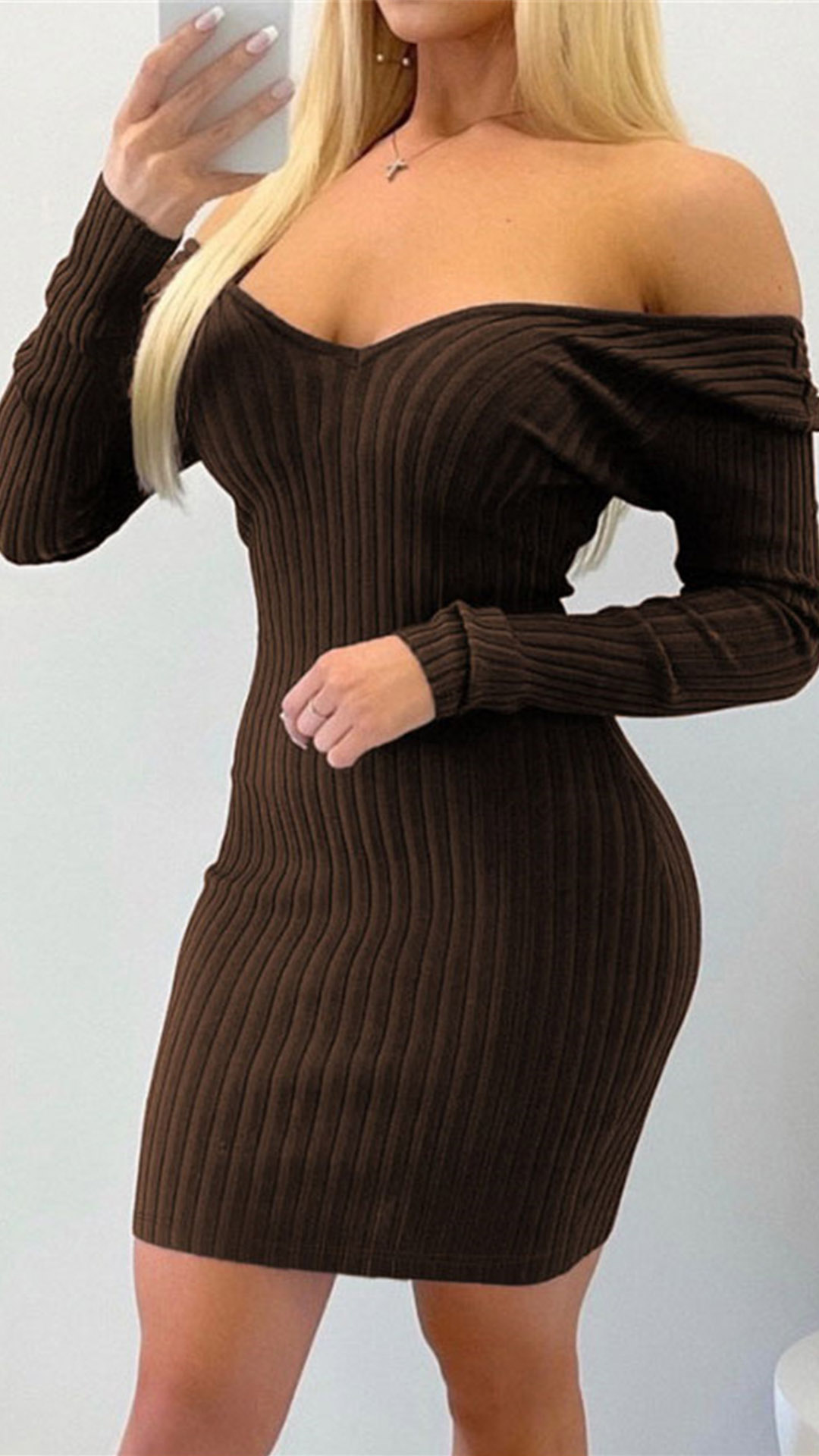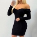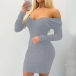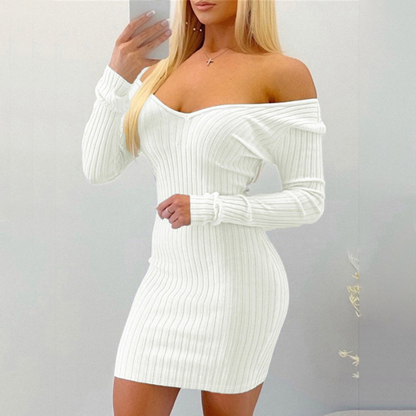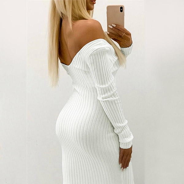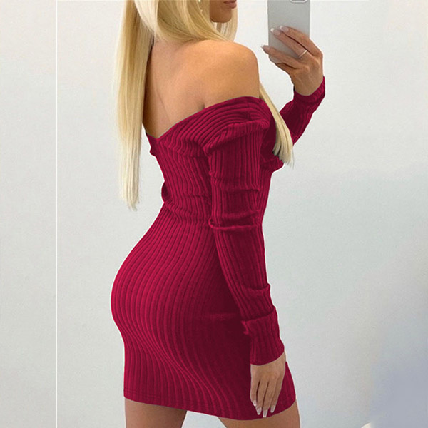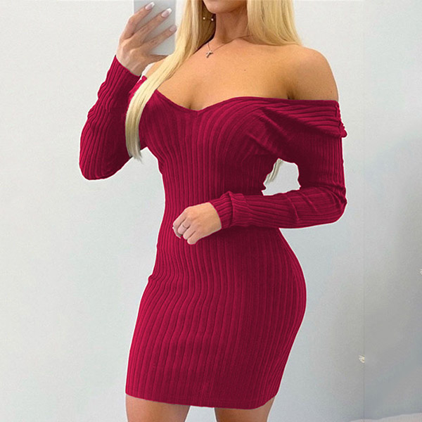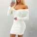 Sexy Solid Color Long Sleeve Knitted Off-the-shoulder Bodycon Dress