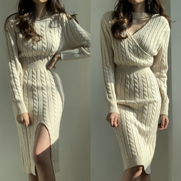This dress is reversible, giving you the option to switch up your look effortlessly. It could be a classic round neck sweater dress, also, could be a sexy V-neck sweater dress. And the slit detail adds a dash of flirtatiousness. Wear it as a standalone piece or layer it up with tights and boots for a chic winter look.