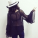 You look so charming in this chiffon blouse. See-through style,with lotus sleeve design makes this piece more appealing.