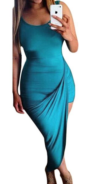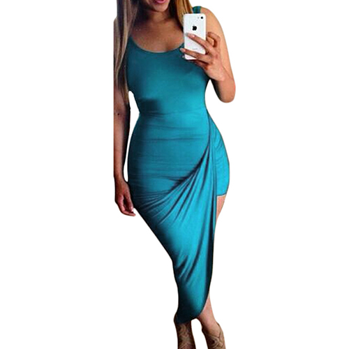Featuring solid color, low-cut and sleeveless design, this dress offers a chance to highlight your sexy and
