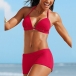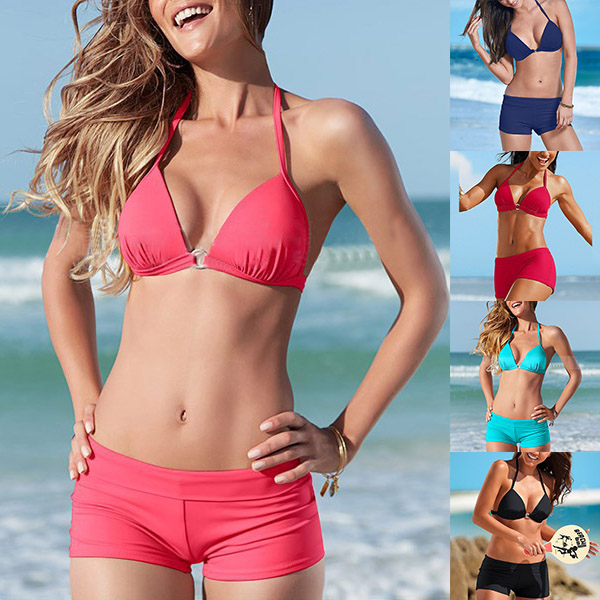 When the summer season hits,it is a good chance to head to the seaside to relax yourself. So we suggest you choosing this bikini set. Solid color style,including a halter bikini top and a low-waist bikini bottom,this bikini set can flaunt off your seductive curve.