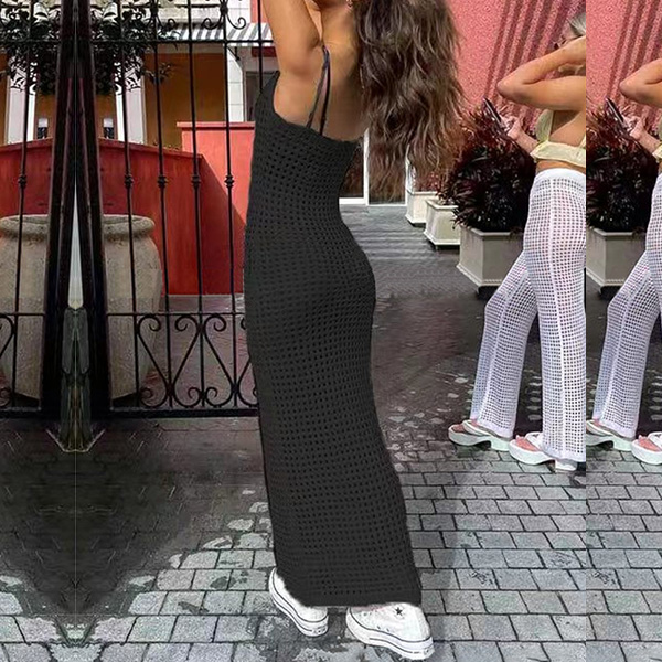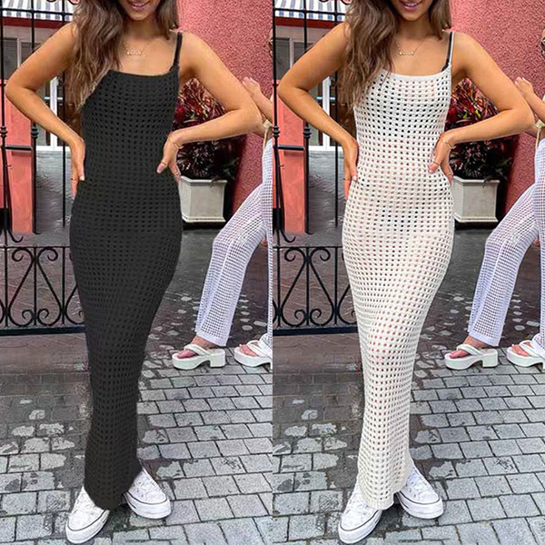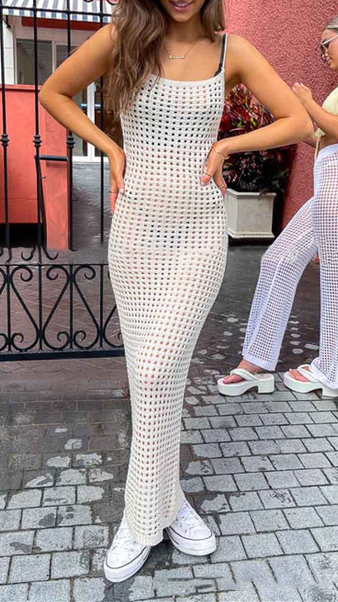 Sexy Solid Color Mesh Swim Cover-up Maxi Dress