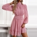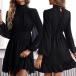 Sexy Solid Color Mock Neck Long Sleeve Cinch Waist Mini Dress