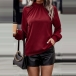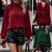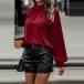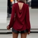 Sexy Solid Color Mock Neck Long Sleeve Draped Backless Shirt