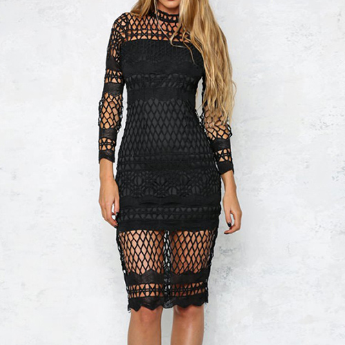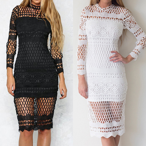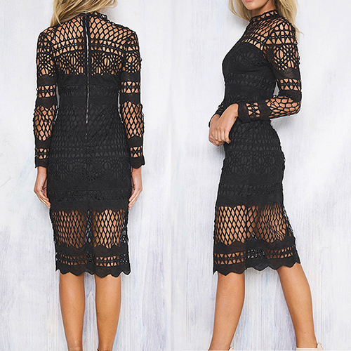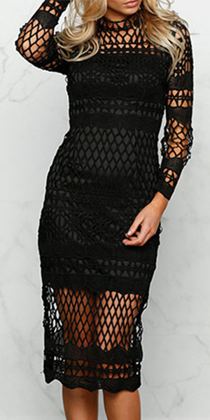 hollow out design exudes your sexy and graceful feminine charm. Outfitted with mock neck, long