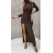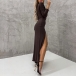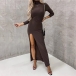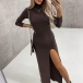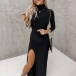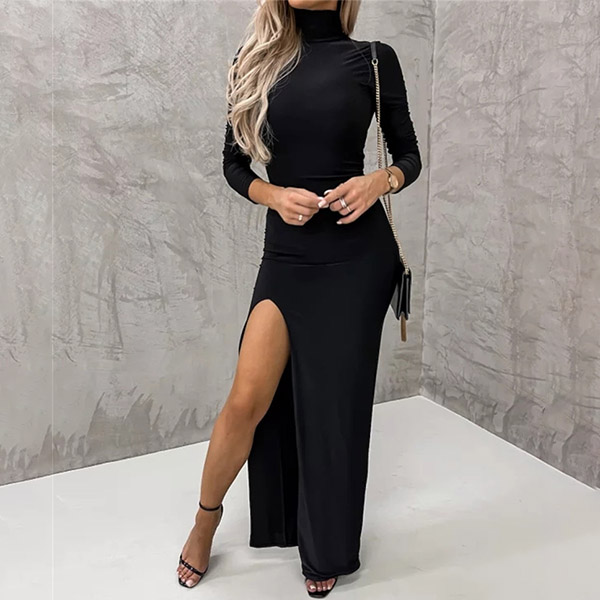 Sexy Solid Color Mock Neck Long Sleeve Slit Bodycon Dress