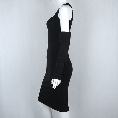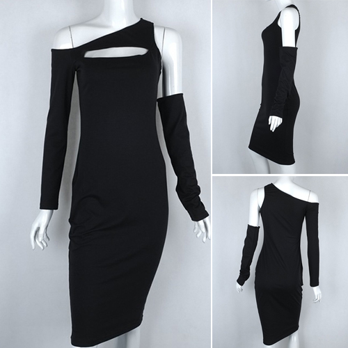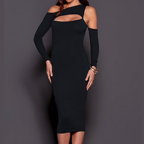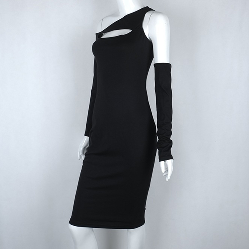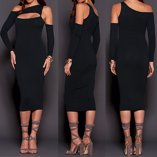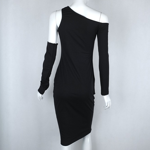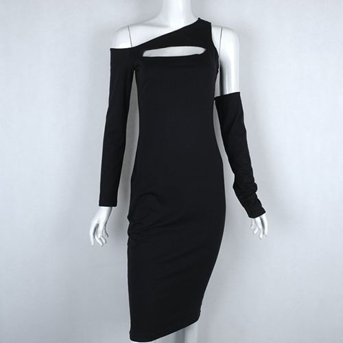 Add a flirty edge to your look instantly with this bodycon dress. With a oblique shoulder construction,