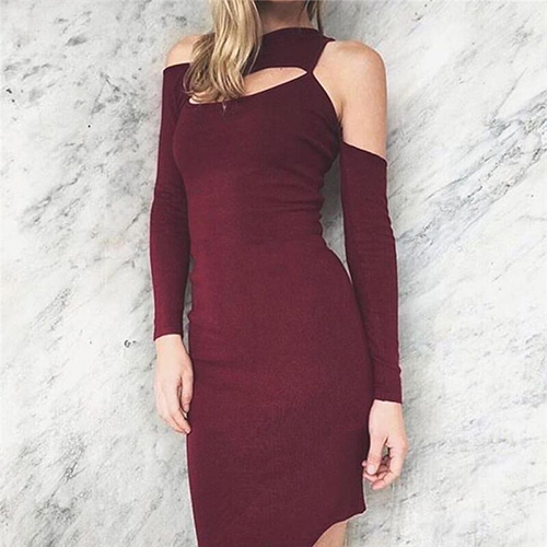 accompanied with long sleeve and hollow out design, this solid-coloured dress can provide you a