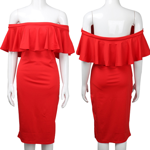Update your collection with this stunning dress. Styled with off shoulder, backless and ruffle design,