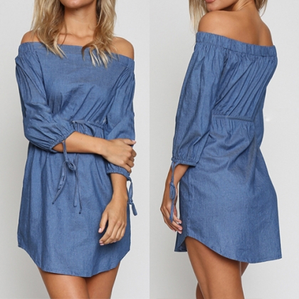 If you are obsessed with denim style, then you can never miss this denim dress. Off shoulder design shows