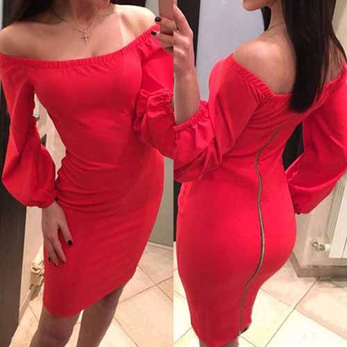 Off shoulder design gives you a chance to flaunt off your charming collarbone. With solid color, long sleeves and back