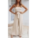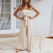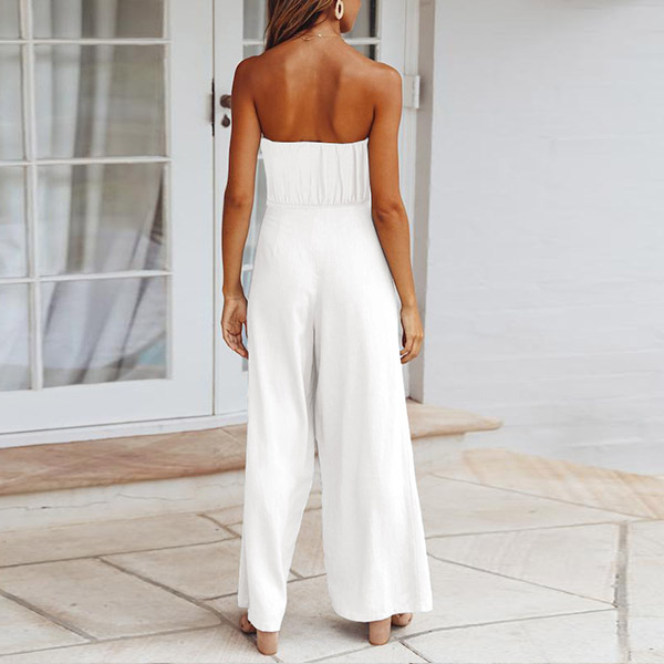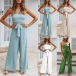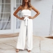 Sexy Solid Color Off-the-shoulder Cutout Self-tie Wide-leg Jumpsuit