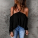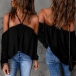 Sexy Solid Color Off-the-shoulder Halter Long Sleeve Shirt