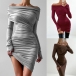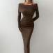 Sexy Solid Color Off-the-shoulder Ruched Bodycon Dress
