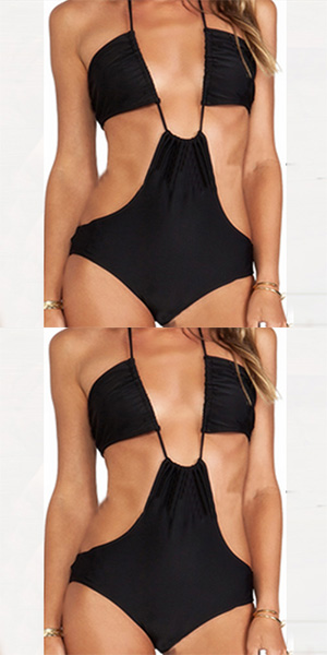 This one-piece bikini features black color,filled with mysterious and sexy flavor. Adjustable strap