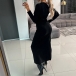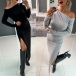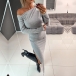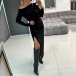 Sexy Solid Color One-shoulder Long Sleeve Slit Bodycon Dress