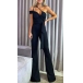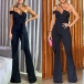 Looking for a jumpsuit that will make you look and feel sexy? Look no further than this Slim-fit Jumpsuit. It features a one-shoulder design with a V-neckline that will show off your cleavage. The wide-leg design will make your legs look long and lean. The self-tie waist will give you a slim and sexy silhouette. This jumpsuit is perfect for a night out on the town or a special event.